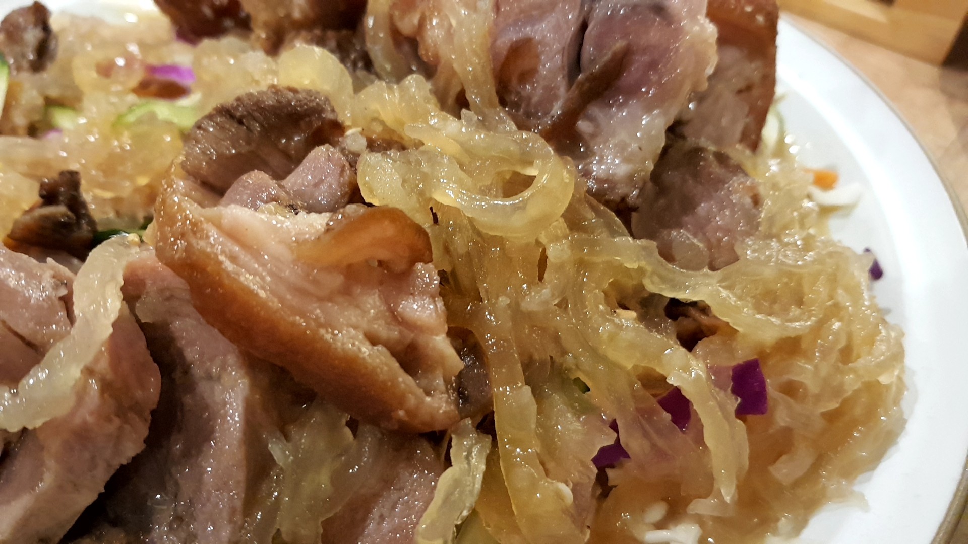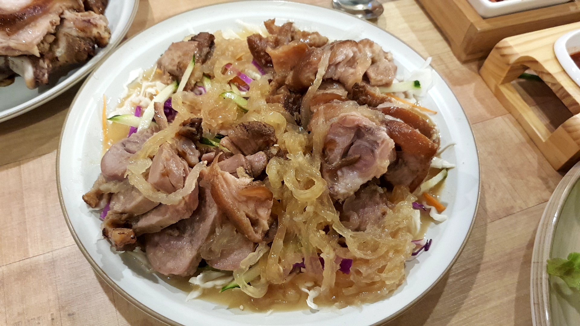 이어서 나온 냉체족발. 저 젤리같은게 해파리죠? 와사비 소스의 족발이 먹고 싶어 시켰는데, 맛도 맛이고 식감도 식감으로 너무 좋았습니다. 크게 와사비 맛이 너무 진하지 않아서 먹기 좋았고 해파리가 생각보다 이질감이 들지않고 족발이랑 잘 어울렸습니다.