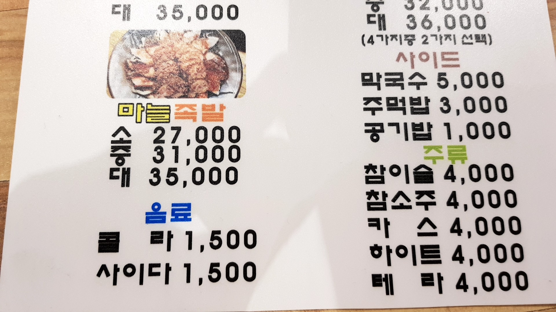 메뉴는 기본 족발, 냉채족발 불족발 치즈불족발, 마늘족발이있고 반반족발도 가능하네요. 사이드로는 빠질수없는 막국수와 주먹밥 공기밥이 있습니다.