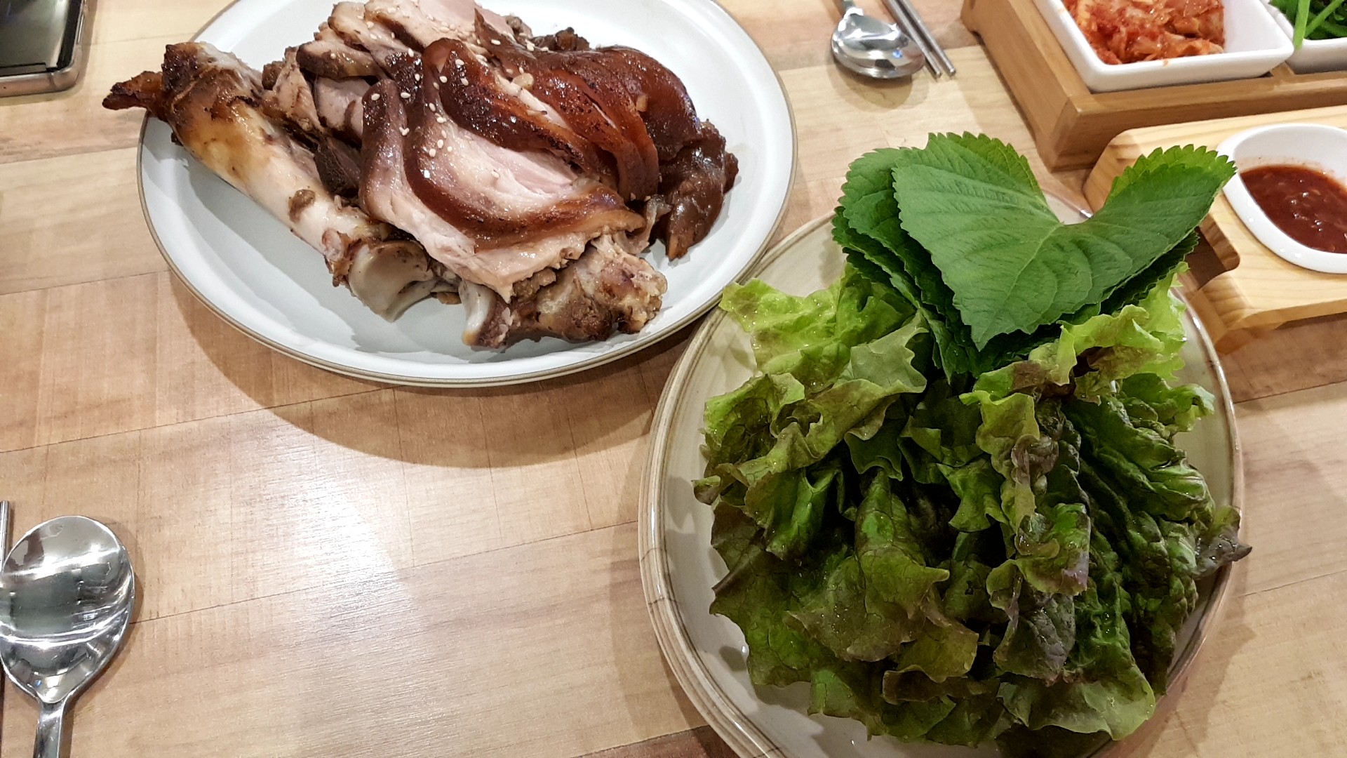 먼저 기본 족발이 왔습니다. 반반족발이라 조금 적어보일수 있지만 정말 많았고 큼지막하니 너무 먹기좋았습니다. 식감도 너무 부드럽고 족발 냄새를 제거하기위해 쓰이는 향신료냄새가 나지 않아 좋았습니다. 쌈야채도 정말 크고 싱싱해서 너무너무 좋았습니다.