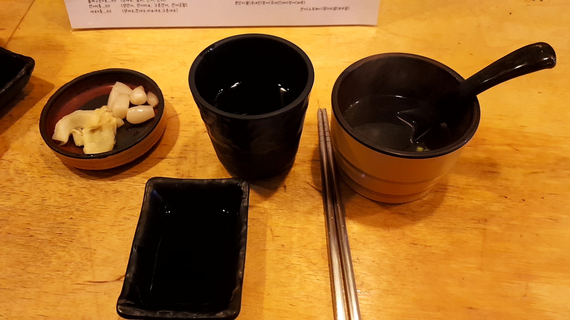 메뉴를 주문하면 기본 장아찌와 미소국, 간장을 줍니다.