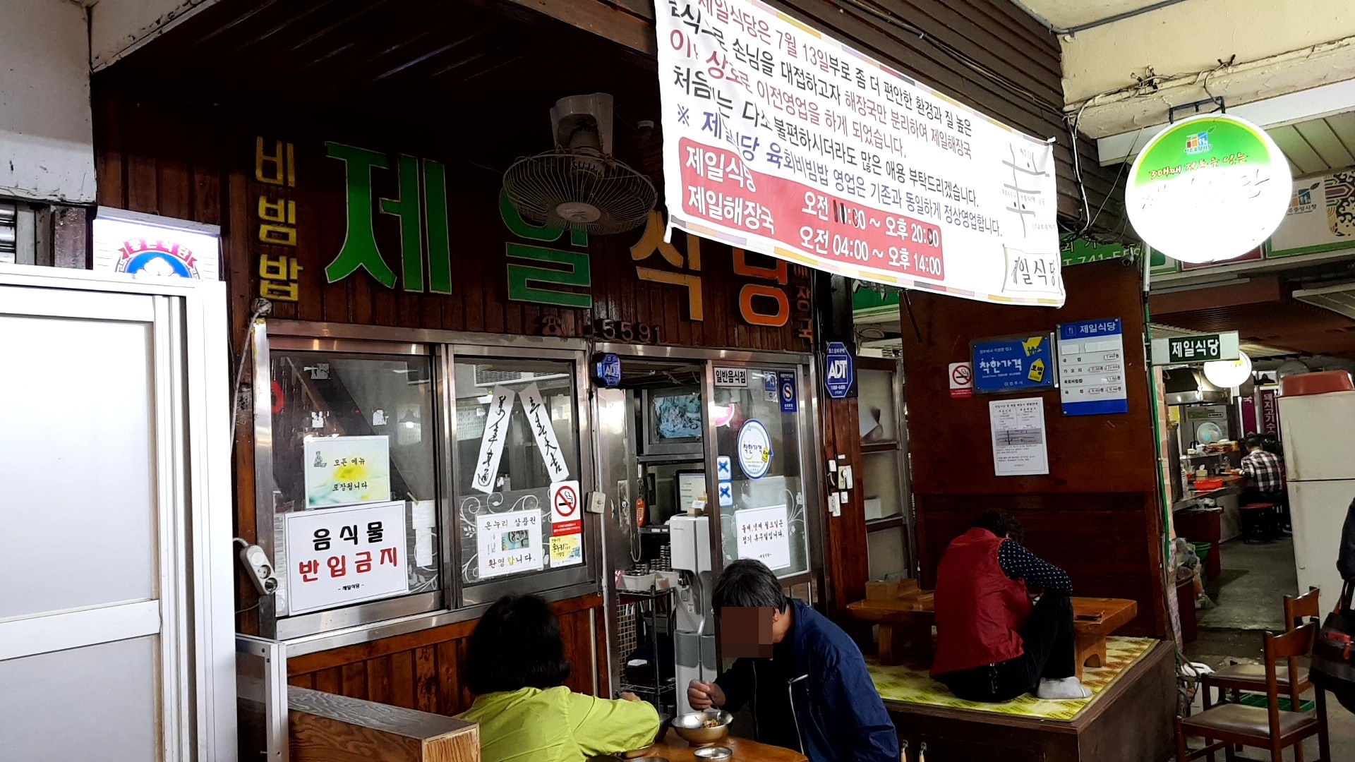 저희는 중앙시장을 구경중 발견한거라 바로 제일식당으로 왔습니다. 조금 검색을해보니 제일식당이 평이 좀더 좋은거 같더라고요. 입구는 이렇게 생겼습니다. 평범하게 시장 내부에 있는 음식점 같은데 오래된 맛집느낌이 솔솔납니다.