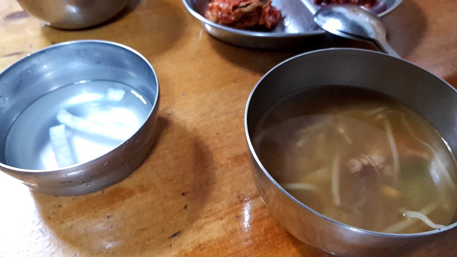 같이 먹는 선지해장국입니다. 비빔밥의 맛을 더 돋아줄 해장국인데 저는 오히려 해장국이 더 인상이 깊었습니다. 어떻게 설명해야될지는 모르겠지만 국물이 정말 맛있고 좋았습니다. 비빔밥이 살짝 밋밋한 맛이있는데 비빔밥 한입에 선지해장국 한숟갈 먹으면 간이 딱맞았습니다.