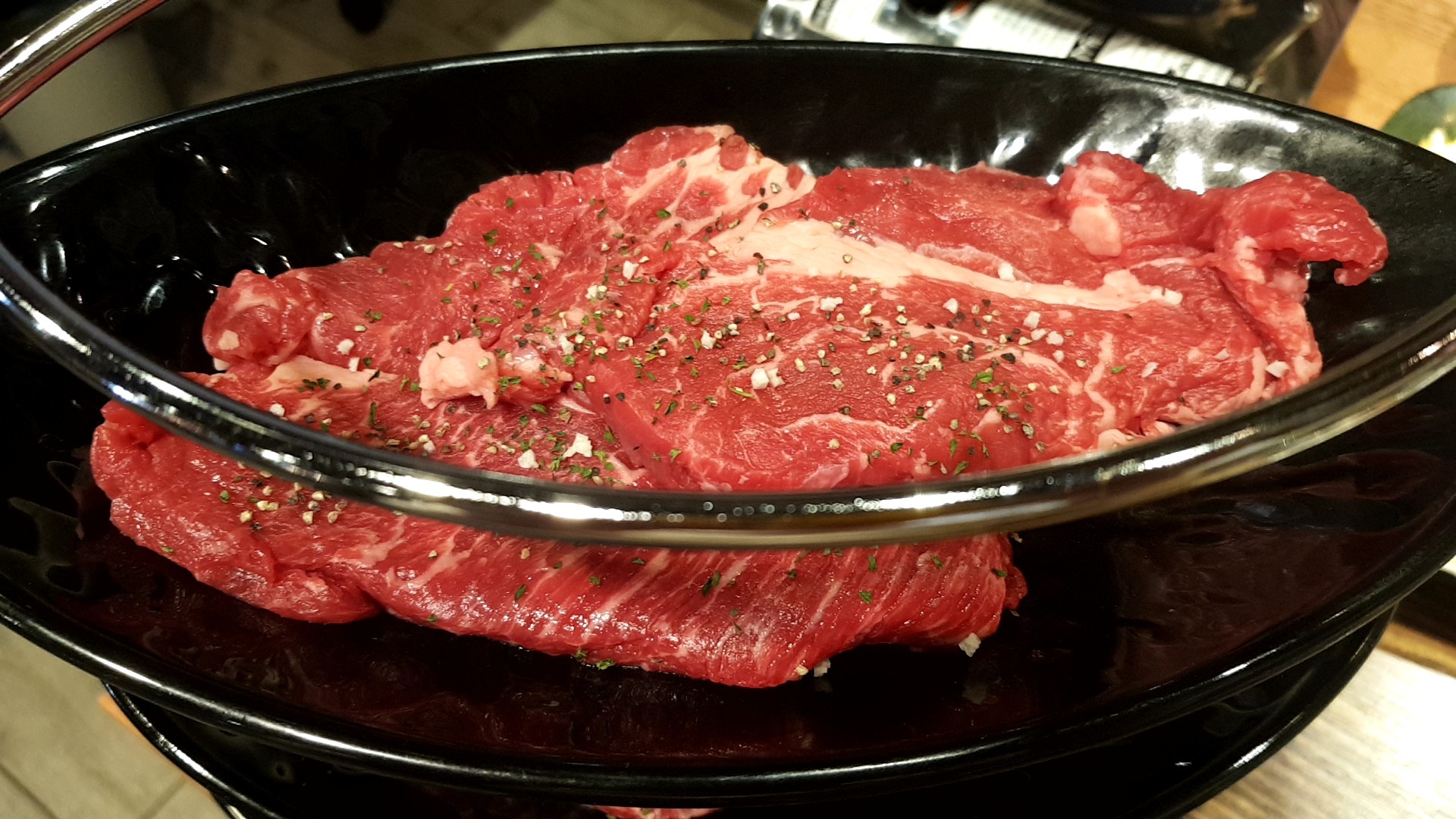 갈비살은 빠르게 올려서 사진이 없지만 등심과 부체살을 좀더 가까이 찍어봐봤습니다. 빛깔도 곱고 정말 맛있어보입니다. 개인적으로 순위를 매기자면 부채살이 제일 맛있고 갈비와 등심이 맛있었습니다. 하지만 부채살은 조금 지방이 없어서 리필했을때는 갈비가 좀더 좋았습니다.