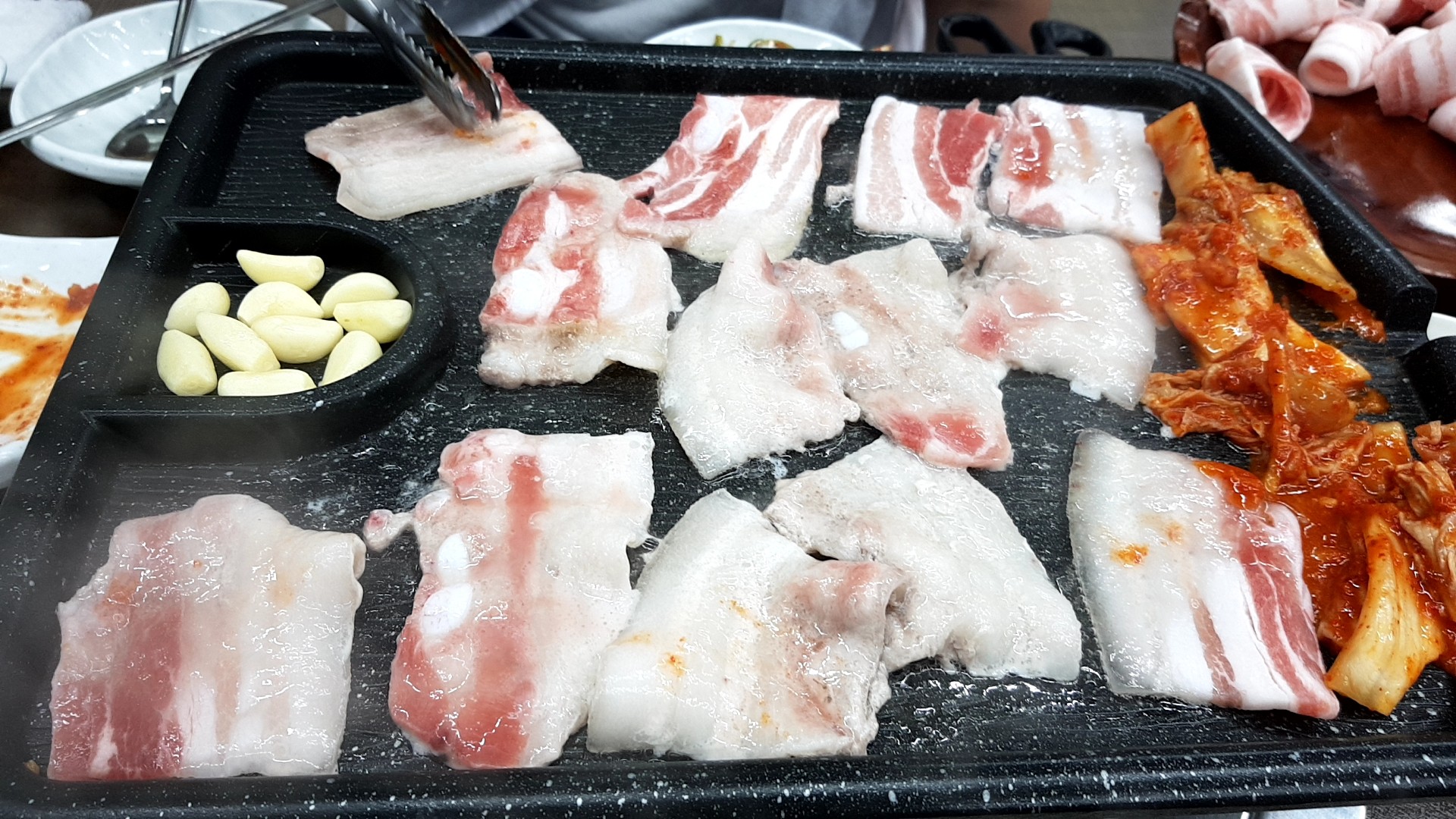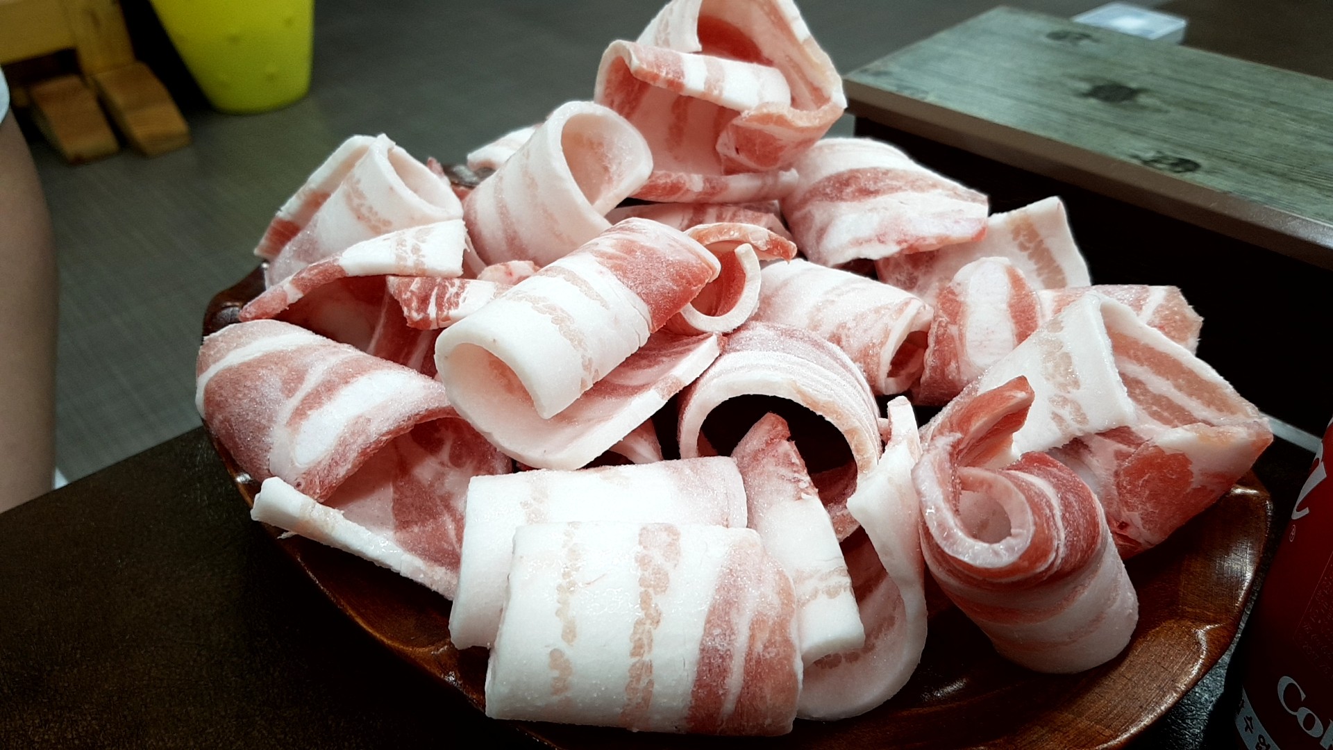 이게 참신기한데 두꺼운 삼겹살도 아니고 대패삼겹살도 아닌 중간 느낌의 삼겹살인데, 둘의 장점을 조금씩 들고온듯한 맛입니다. 은근 빠르게 구워먹을수 있고 식감도 매우 부드럽지만 또 적절한 씹는 맛이 있어 개인적으로는 상당히 괜찮다고 생각했습니다.
