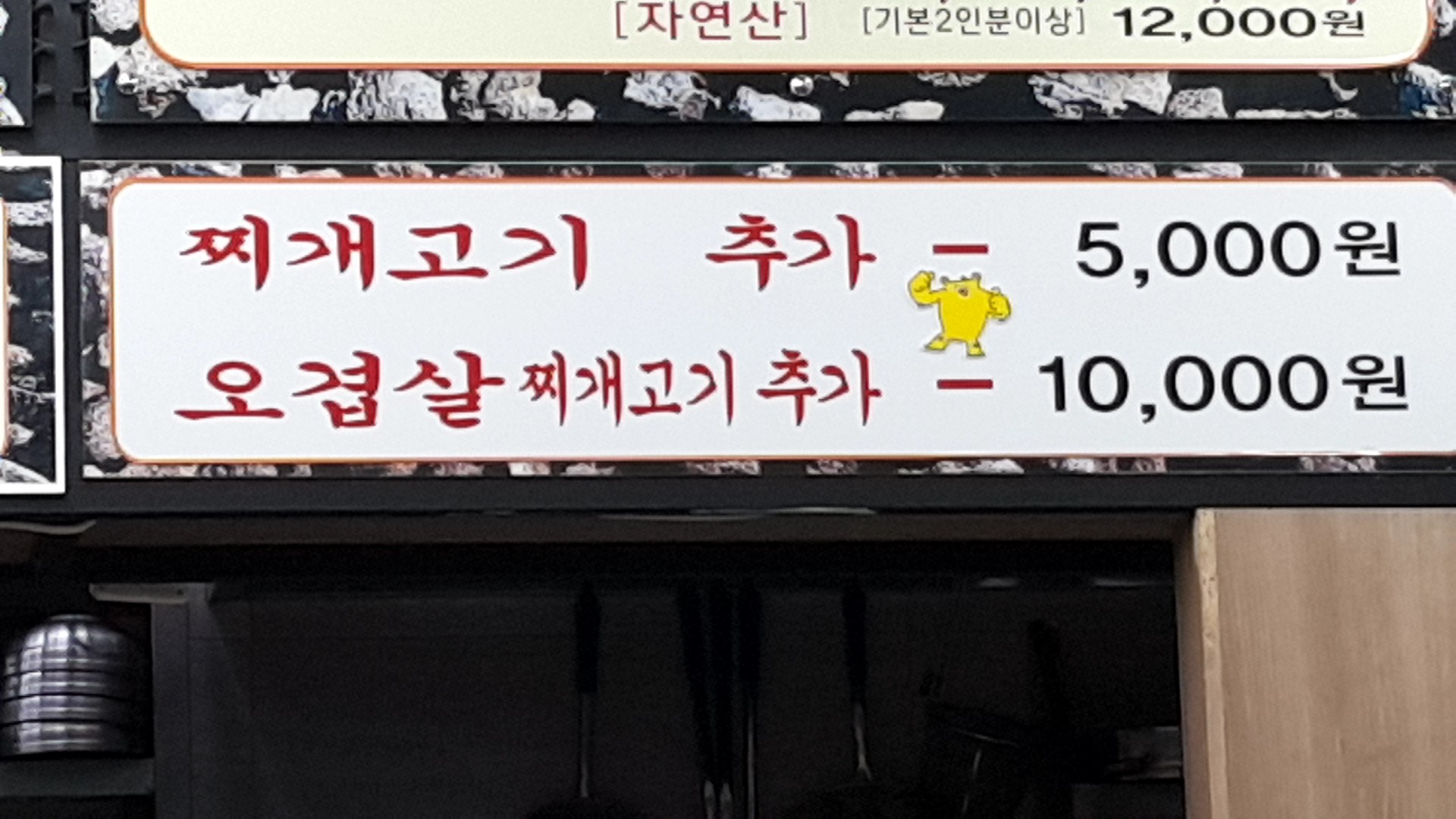 돼지찌개는 포장이 되는데 2인분부터 현금가 만원이네요.